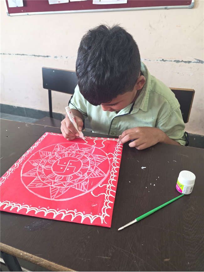 Each Student enthusiastically prepared items of decoration with utmost concentration and precision within a limited time adorning their classes with handmade lanterns, Diyas , and Aipan Art . The classrooms shimmered with vibrant colours, and innovative themes reflecting the essence of Diwali — the victory of light over darkness and good over evil??????