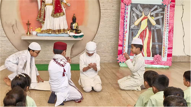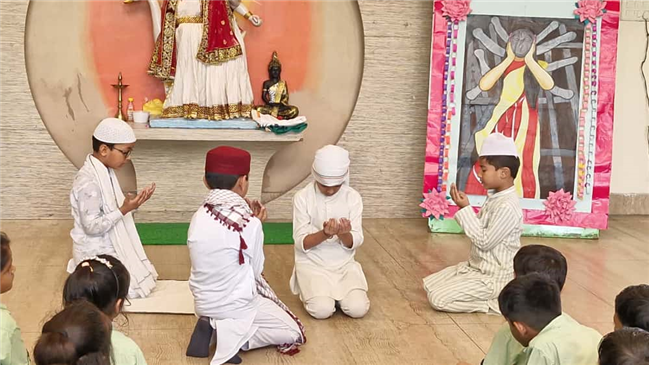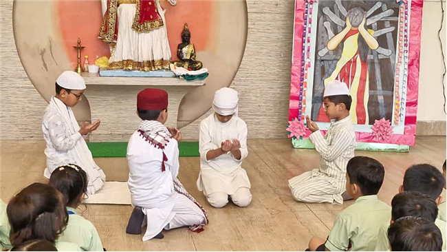 ?? The highlight of the program was a powerful play by Class 2 students on the theme "Unity is Strength" and Secular India ?????????. With colorful costumes and strong dialogues, the children showcased Gandhiji’s dream of a nation where people of all religions and communities live together in harmony ??????.